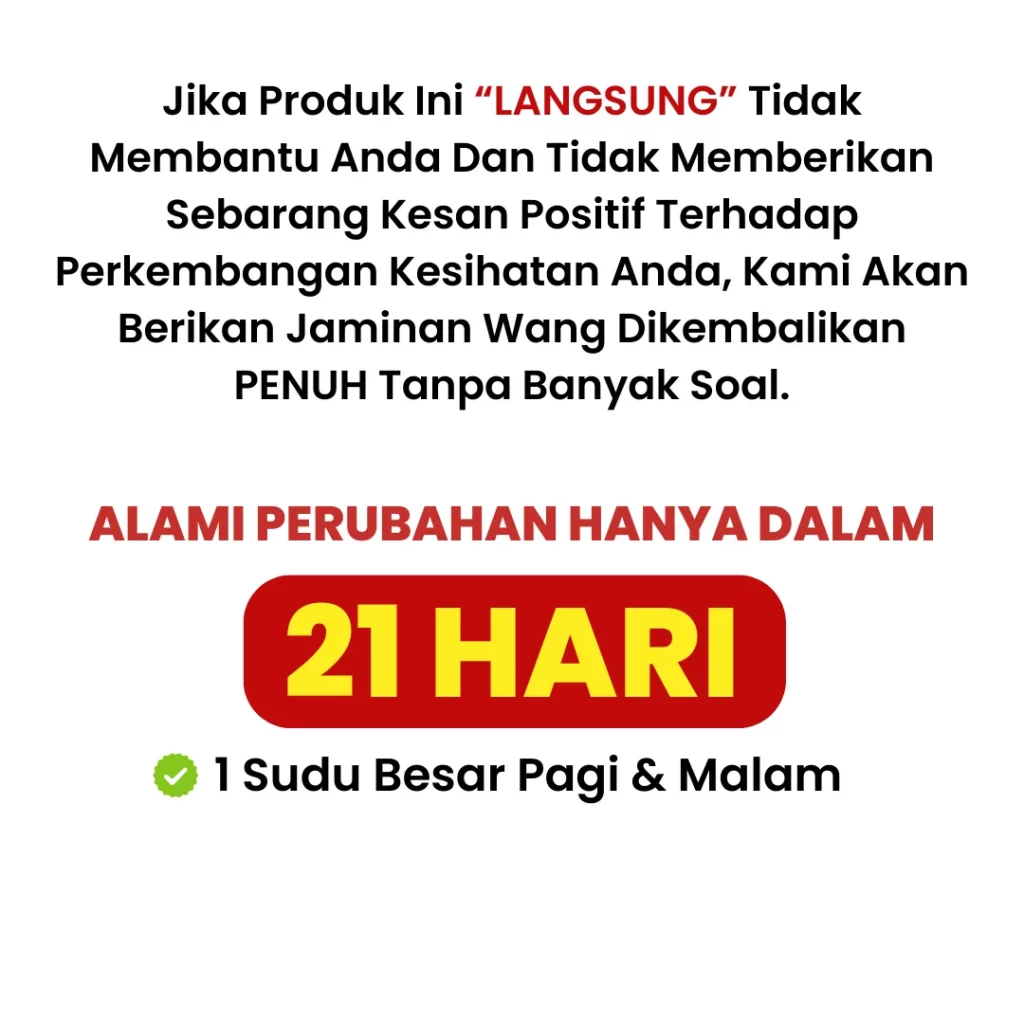 Kesannya boleh berbeza mengikut individu. Walau bagaimanapun, pengguna biasanya mula merasai perubahan positif dalam kesihatan mereka selepas menggunakan satu botol (250ml) secara konsisten.